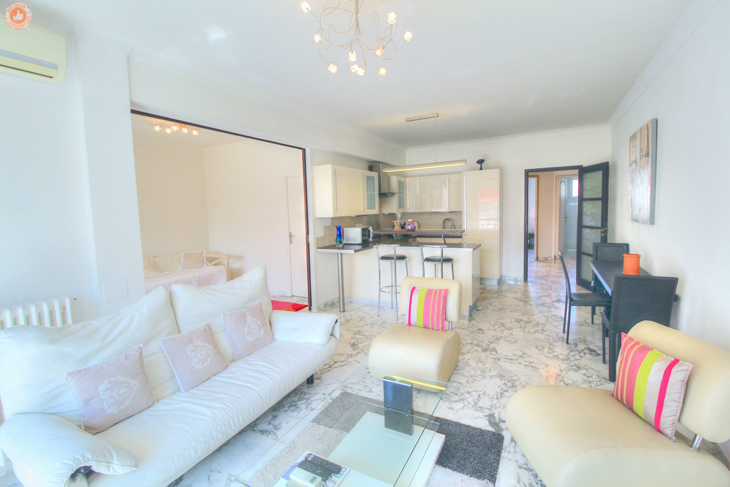 This apartment has been completely renovated, in a warm and contemporary style, benefiting from a small balcony with an unobstructed view. Its surface area is 80m² and its geographical location is ideal for conferences: close to the Palais des Festivals, and to all shops and restaurants. Fully equipped, it can comfortably accommodate up to 4 […]
