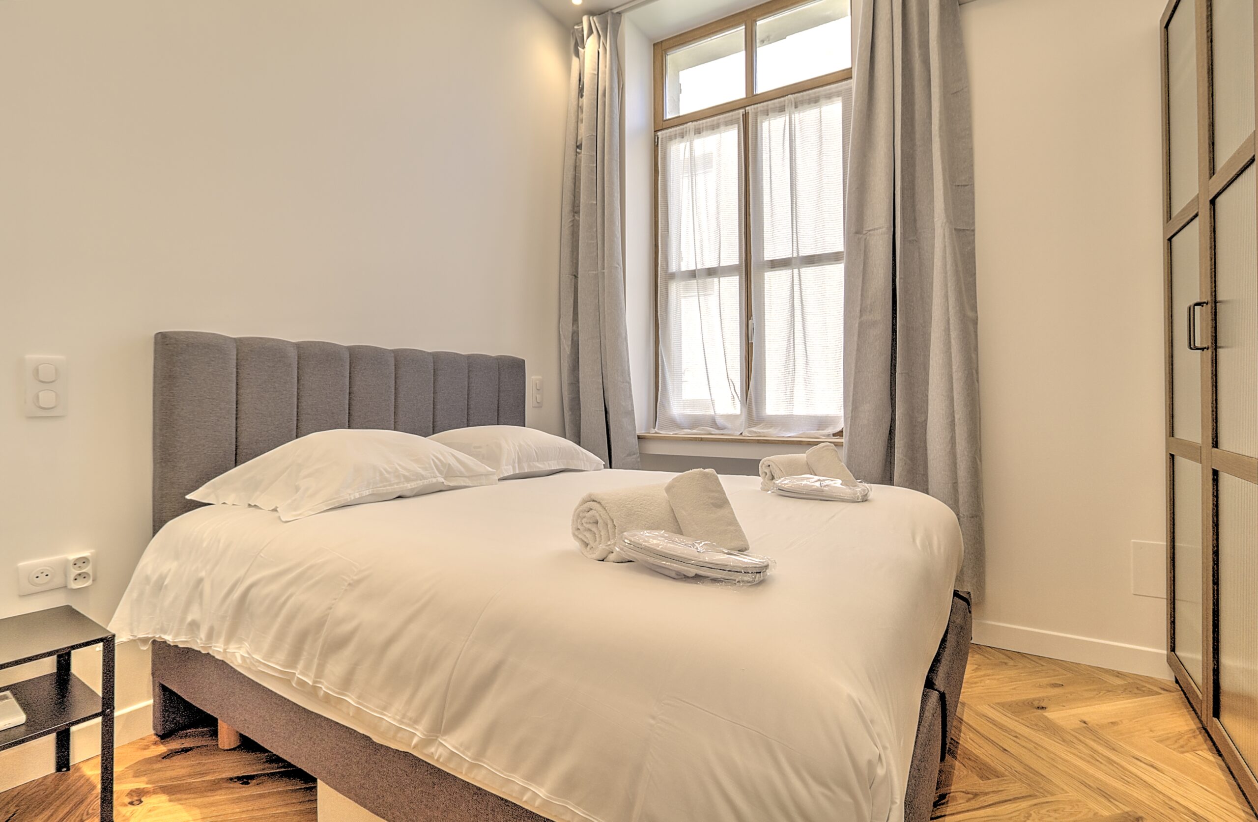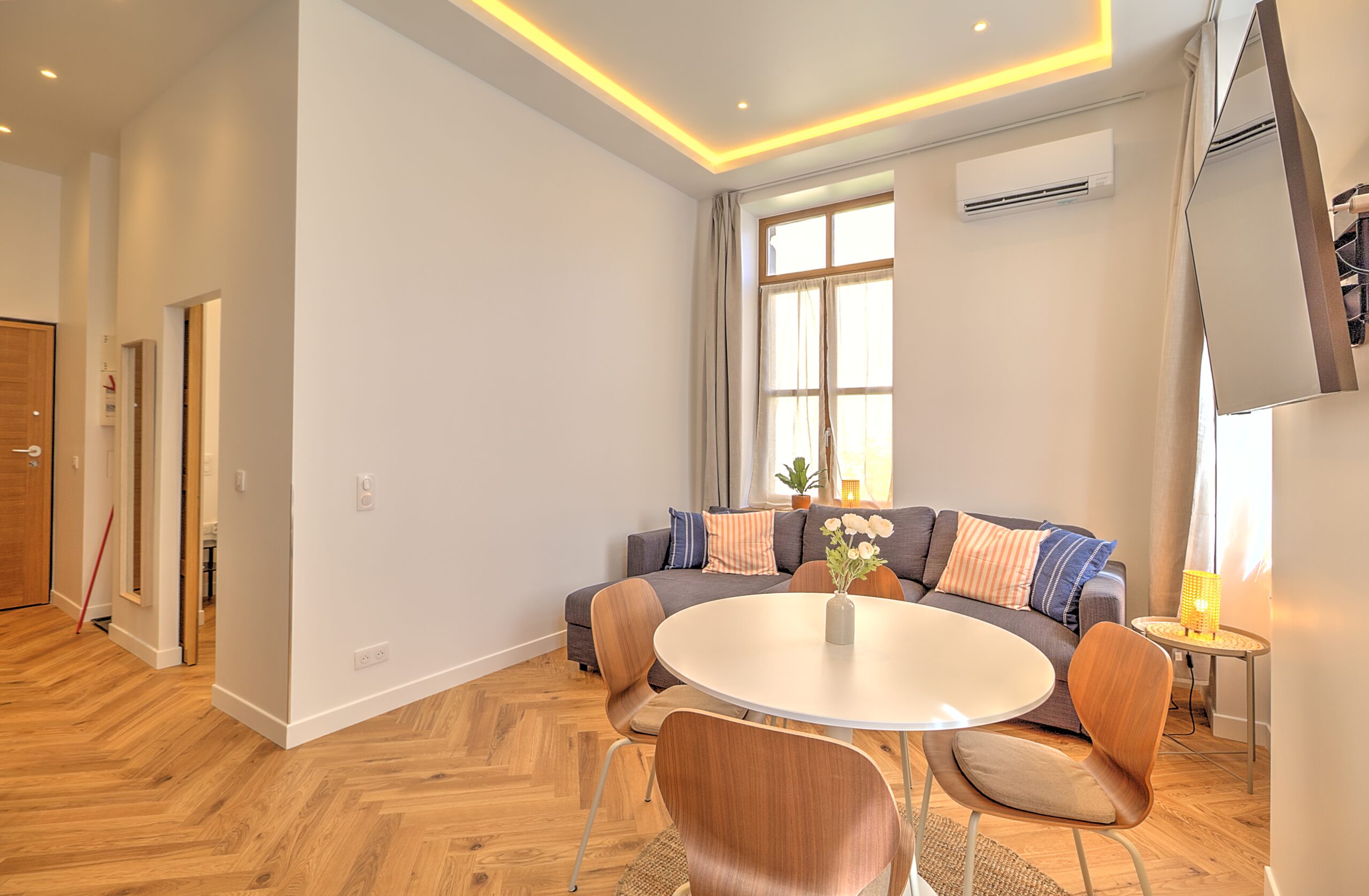 Cet appartement est situé proche du centre de Cannes. À seulement 13 minutes à pied du Palais des Festivals et des plages de La Croisette. Au 1er étage sans ascenseur, l’appartement, élégant et raffiné, a été entièrement récemment rénové. Il comprend 1 chambre avec 2 lits simples et la possibilité de faire en lit double.1 salle de bain avec douche et toilette. Climatisé, équipé pour accueillir jusqu’à 3 personnes disposant d’un canapé convertible dans le salon. La cuisine est tout équipée. Elle bénéficie d’un four, un micro onde un lave vaisselle. Un lave linge séchant se trouve dans la salle de bain.